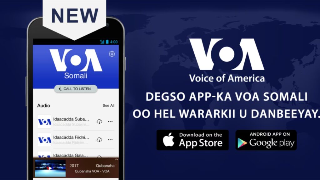 VOO står for Voice of America, den somaliske service af det amerikanske mediehus.