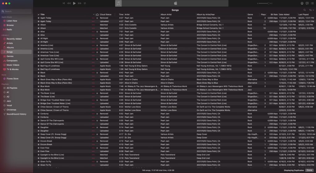 - For at finde helt identiske dubletter kan du højreklikke på en hvilken som helst sang og vælge Vis Dubletter. Derefter kan du sortere listen efter Album for at gruppere identiske sange.