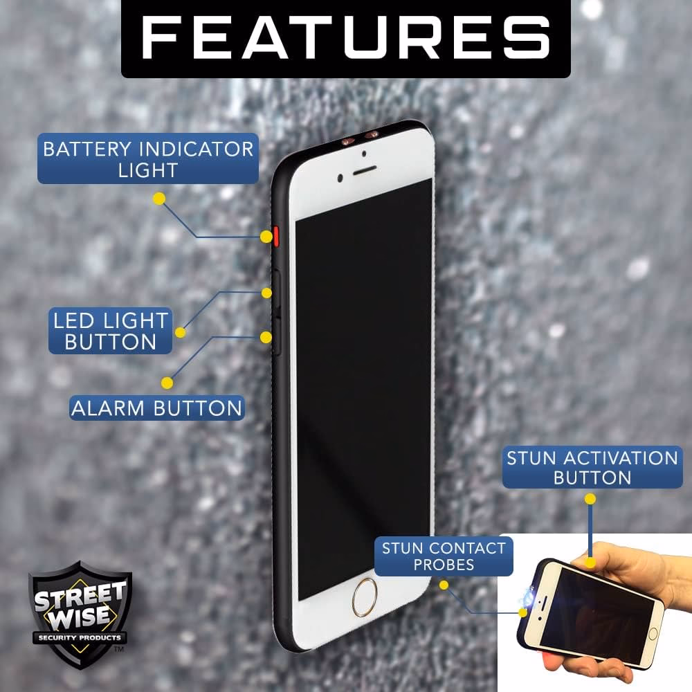 The cases are also slimmer and less bulky than before. The stun gun is able to fire multiple charges at six to seven times more than the defensive standard for non-lethal conductive energy weapons. It also doubles as a phone charger, meaning you can charge your phone while retaining enough power to use the stun gun. - Hvad er forskellen på en strømpistol og en Taser?