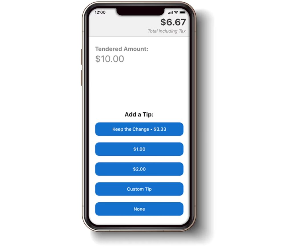 Appen kan automatisk bede kunden om at tilføje et drikkepengebeløb (med justerbare procenter) og underskrive direkte på skærmen. Dette er en standardpraksis i mange serviceorienterede virksomheder.