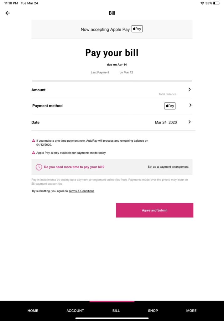 - Angiv dine betalingsoplysninger. T-Mobile accepterer betalinger via betalingskort (kredit- eller debetkort) eller via elektronisk check (ACH).