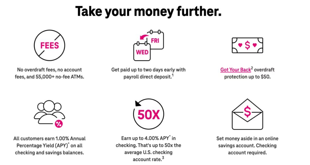 - Krav til T-Mobile kunder: For at opnå den højeste rente skal du have en kvalificerende T-Mobile trådløs plan og opfylde visse indbetalingskrav.