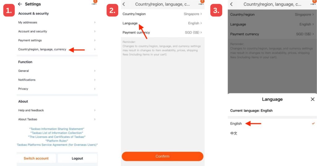 - Er der en engelsk version af Taobao-appen?