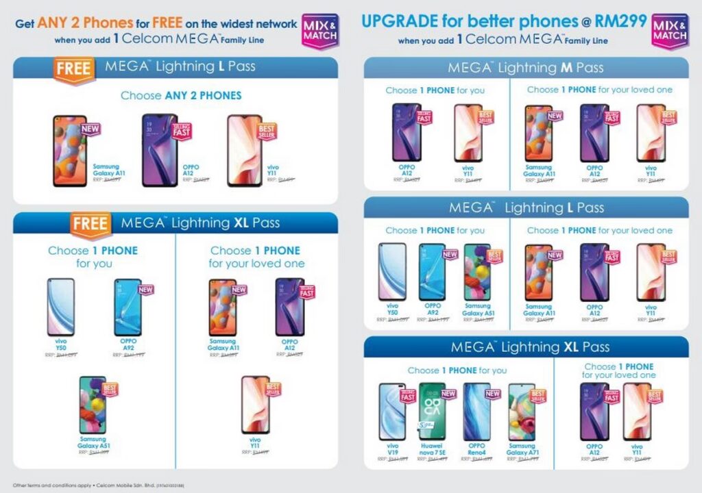 Hvis du ikke er på udkig efter en ny telefon, er der stadig masser af værdi at hente. Celcom MEGA, Xpax Postpaid og Digi Postpaid-abonnementer fortsætter med at tilbyde op til 50% bonus internetkvote til dine daglige internetbehov. Udvalgte abonnementer inkluderer desuden gratis 5G-adgang. Kunder, der tilmelder sig en Digi Postpaid-plan, kan desuden nyde en samlet planrabat på op til RM180, hvilket giver en betydelig besparelse over tid.