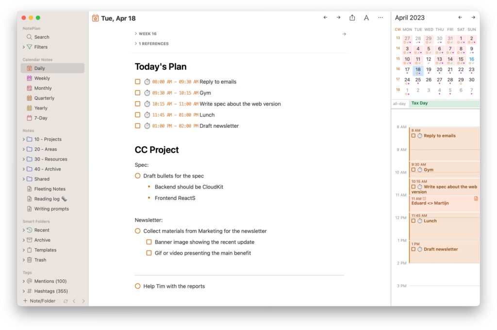 Grundlagt i 2016, er TaskPaper en af de ældste to-do apps til Mac. Dets seneste version, TaskPaper3, bevarer det almindelige tekstformat fra den originale app, men med et moderne twist. Værktøjets enkle almindelige tekstformat gør det også ideelt for brugere, der finder avancerede projektstyringsapps distraherende eller forvirrende. TaskPaper3 integrerer problemfrit med din Macs påmindelsessystem, så du aldrig går glip af noget på din to-do liste.