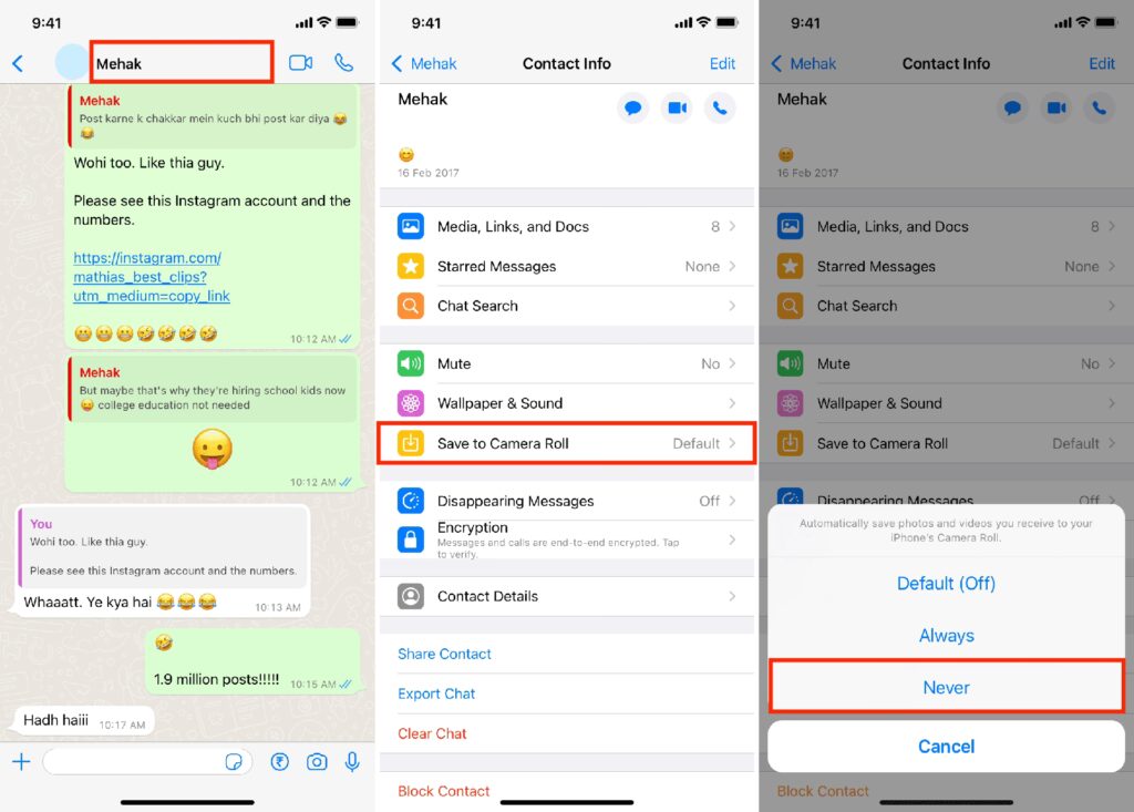 Hvis du foretrækker at have mere finkornet kontrol over, hvilke medier der gemmes, kan du indstille WhatsApp til at gemme billeder fra individuelle chats eller grupper. Dette er især nyttigt, hvis du kun vil gemme billeder fra bestemte personer eller samtaler.