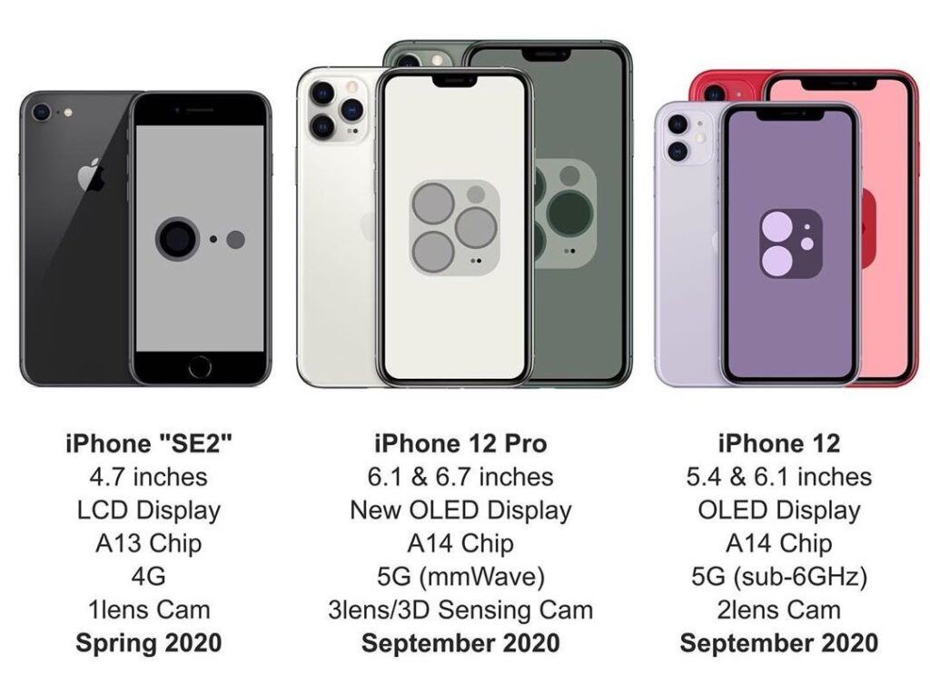 2020iPhone 12-serienTirsdag i oktoberFredag i oktober/november5G-understøttelse, MagSafe, forsinket pga. COVID-19