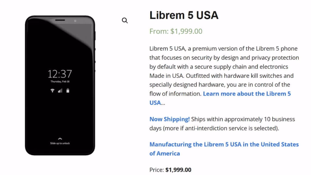 For dem, der prioriterer privatliv og sikkerhed over alt andet, er Purism Librem 5 et unikt valg. Denne telefon er stolt fremstillet i USA, med de fleste komponenter også hentet fra USA. Purism er kendt for sin gennemsigtighed omkring komponenternes oprindelse og sit engagement i open source-software. Selvom det er en nicheprodukt med et højere prispunkt og et mere begrænset app-udvalg på grund af dets eget operativsystem, er det den ultimative mulighed for dem, der søger en amerikansk-fremstillet telefon med maksimal sikkerhed og privatliv.