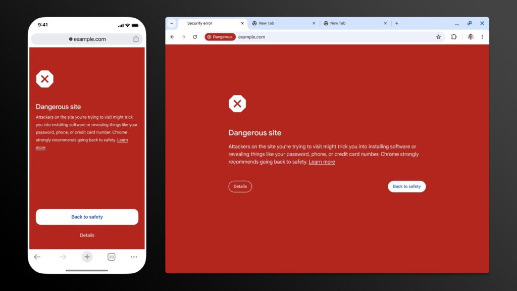 Hvis du ser meddelelsen "Forbindelsen er ikke sikker og farlig", betyder det ofte, at Google Safe Browsing har markeret webstedet som potentielt skadeligt, og det frarådes at fortsætte. Værktøjer som Sitechecker kan også hjælpe med at auditere dit eget websteds sikkerhed, herunder status for SSL-certifikatet.